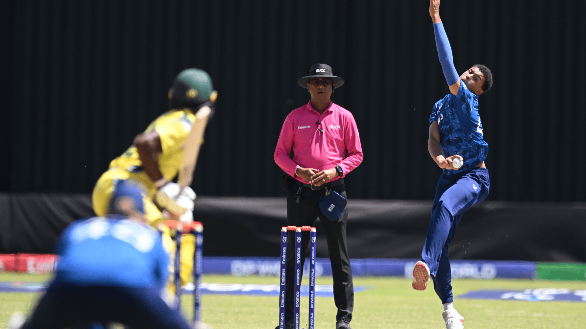 Australia’s reply was led by skipper Oliver Peake, who counter-attacked aggressively to keep the contest alive. However, England struck at key moments. Manny Lumsden dictated terms for much of his eight-over spell, with his cross-seam deliveries proving too difficult for Australia. His introduction in the 28th over forced a breakthrough courtesy of a stunning catch from Joseph Moores in the deep removing Alex Lee-Young, before removing Jayden Draper who could only manage a top edge.