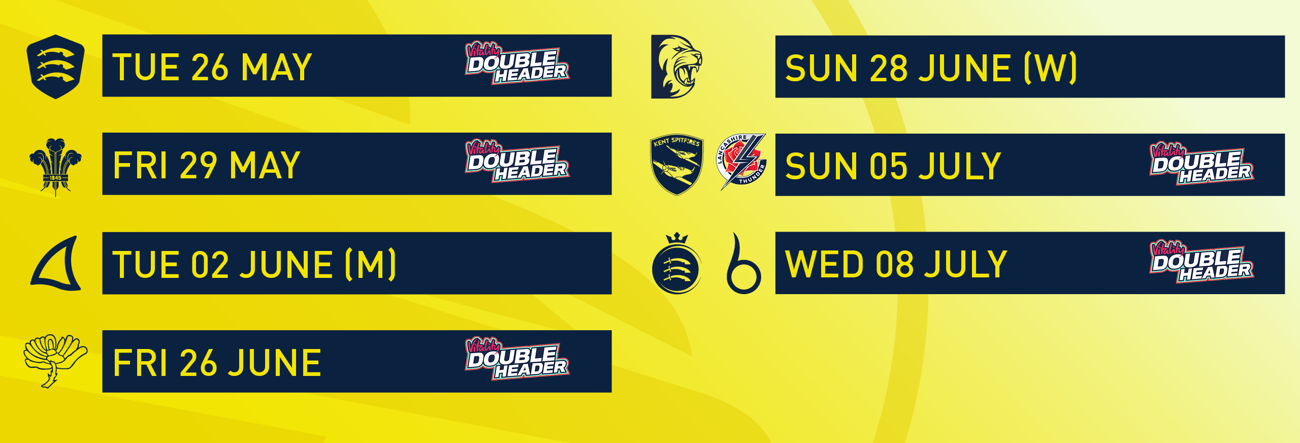 See Hampshire Hawks' home Vitality Blast fixtures below. Double headers are where both men's and women's sides play on the same day.